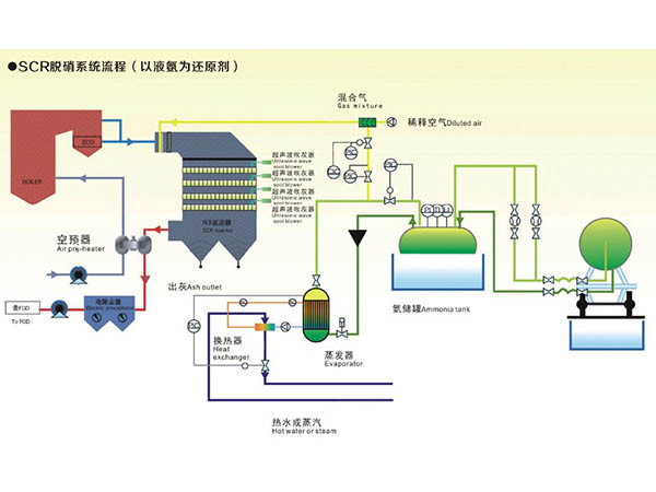 SCR脱硝工艺流程图 发布时间:2019-03-28 产品说明:SCR脱硝技术是指在催化剂的作用下,利用还原剂(如NH3)“有选择性”地与烟气中的NOx反应并生成无毒的N2和H2O。选择性是指在烟气脱硝过程中烟气脱硝催化剂有选择性地将NOx还原为氮气,而烟气中的SO2被氧化成SO3。